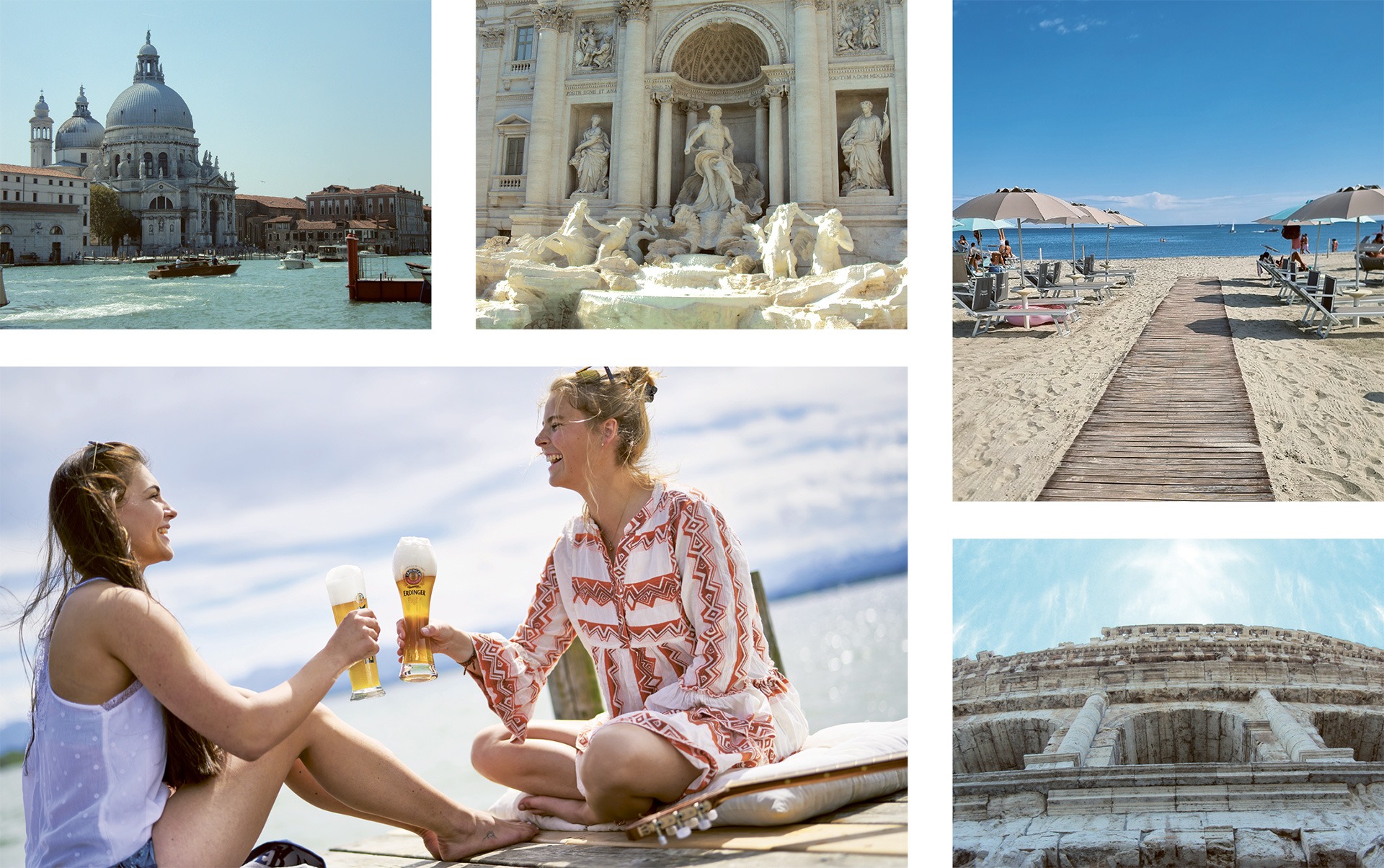 „Italien ist eine wahre Schatzkiste der Geschichte“, sagt Alessandro Zanghi. Wer reist, sollte unbedingt Venedig, Rom, Verona und Florenz gesehen haben. Doch auch die Küsten­regionen, die Dolomiten oder die Inseln machen jeden Urlaub unvergesslich. Ebenso bunt ist die italienische Eventszene, in der ERDINGER fest verankert ist. Fans finden uns beim Bike Festival Riva del Garda, auf dem Stegener Markt in Bruneck, beim Altstadtfest Bozen oder auf dem Oktoberfest „Oktoberland“ in Neapel. Auch auf Instagram erdinger.it hat sich eine lebendige Fan-Community gebildet, die ihre ERDINGER Momente unter der italienischen Sonne teilt.