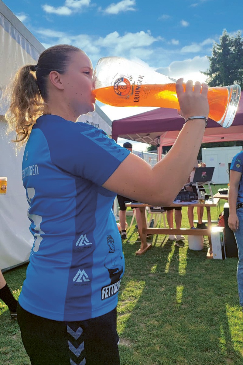 Anja Selzle genoss nach dem Elfmeter-Turnier im schwäbischen Wittislingen unser herrliches ERDINGER Weißbier mit feiner Hefe – natürlich aus dem 3 l-Glas.