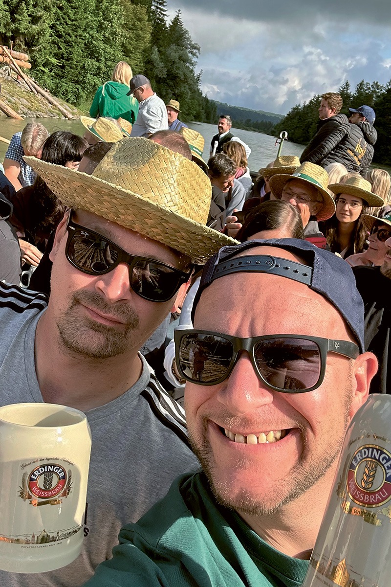 Oliver Dörschel und sein Kumpel Sandy Gutmann leben das große ERDINGER Sommermärchen auf der Floßfahrt Gaudi 2025.