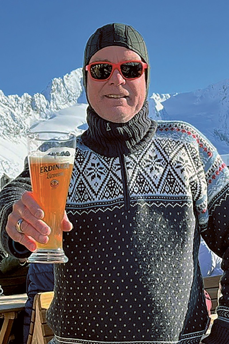 Schneebedeckte Berge und eine frische ERDINGER Urweisse, mehr braucht es nicht für Peter Segna im Skigebiet Hochgurgl im Ötztal.