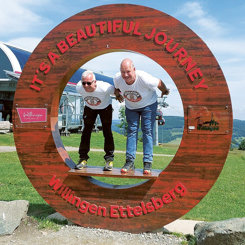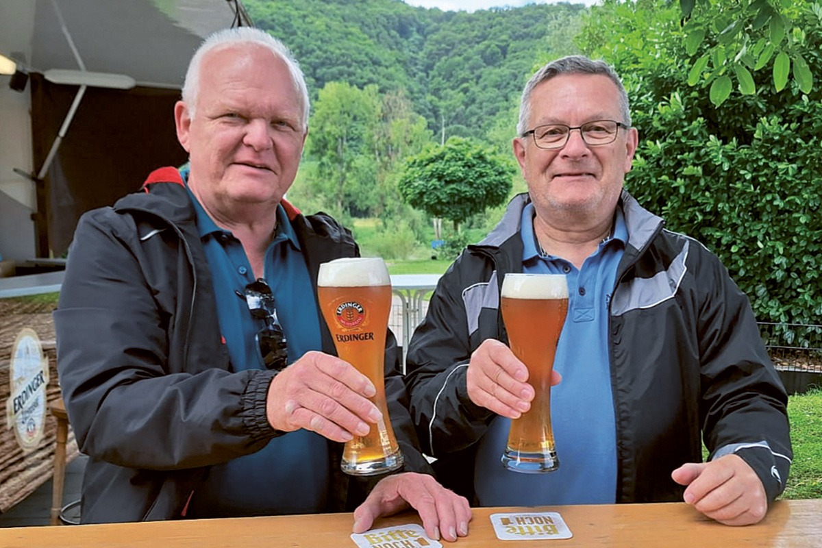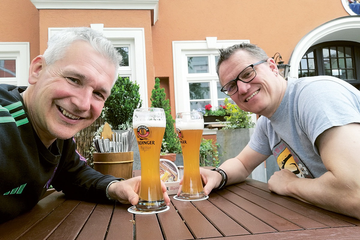 Die 25-jährige Freundschaft von Thomas Steiniger aus Erding und Thomas Rieger aus Chemnitz wird typischerweise mit einem ERDINGER Weißbier begossen.