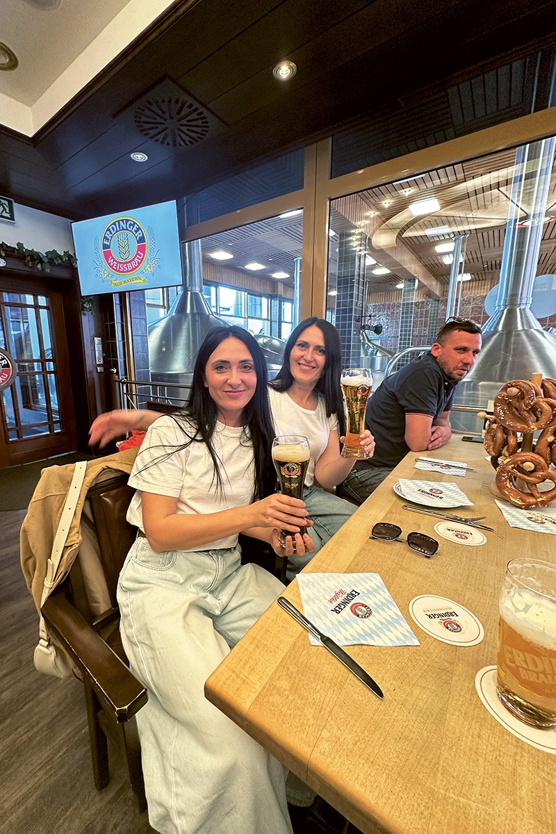 Yuliia und Alina genossen nach der Fahrt im ERDINGER Fanbus und einer Brauereiführung unsere Bierspezialitäten sowie leckere Schmankerl im ERDINGER Besucherzentrum.