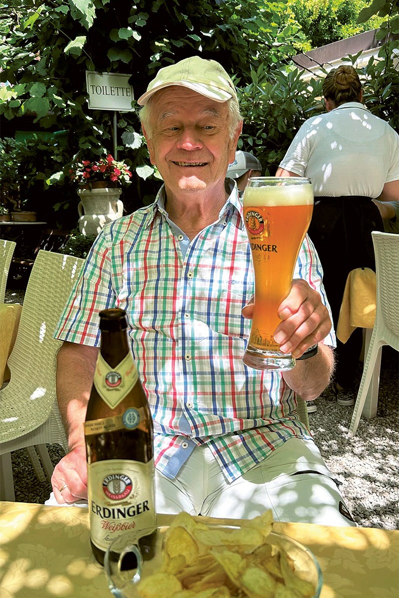 Albert lässt sich das ERDINGER Weißbier an einem schattigen Plätzchen am Gardasee schmecken.