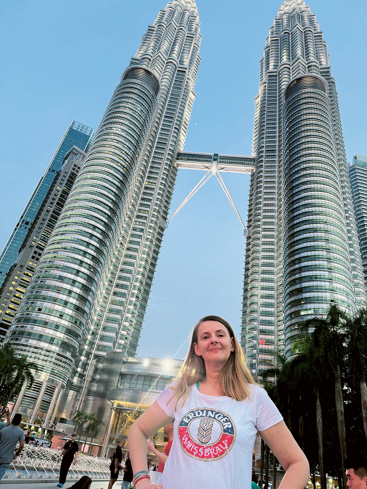 Bianca Neumann nimmt uns mit nach Kuala Lumpur. Wir finden, das ERDINGER Logo macht sich hervorragend vor den Petronas Towers.
