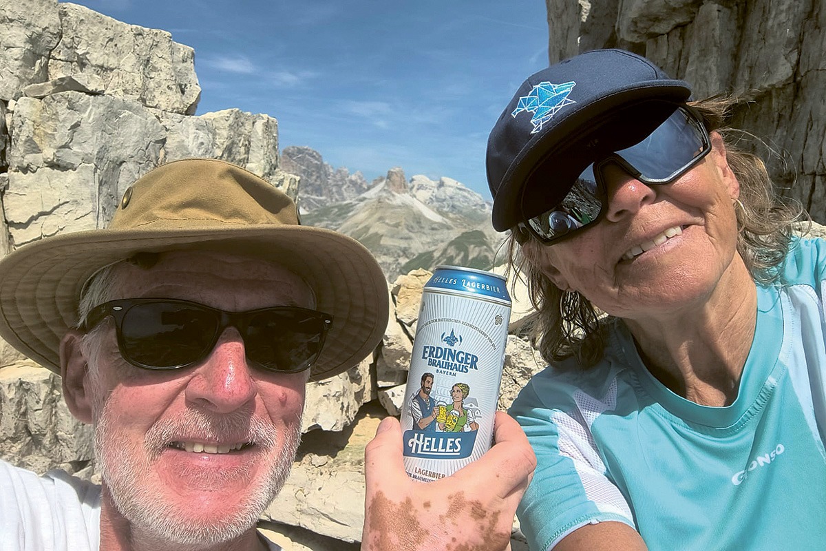 Die Wanderpause schmeckt mit ERDINGER Brauhaus Helles am besten. Das dachten sich auch Ingrid und Hartmut Witting aus Erding bei ihrer Tour um die drei Zinnen in Südtirol.