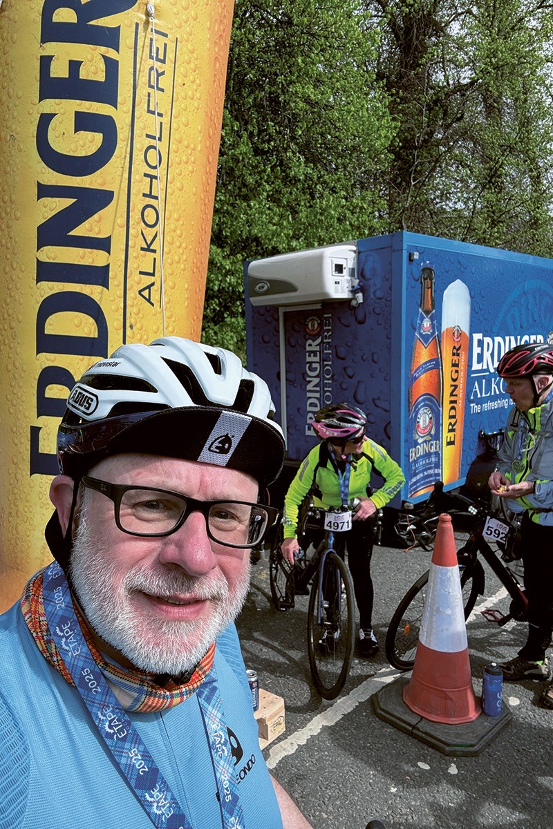 Nach der Loch Ness-Etappe bei einem Radrennen in Schottland genießt Jimmy McCarthy ein ERDINGER Alkoholfrei.