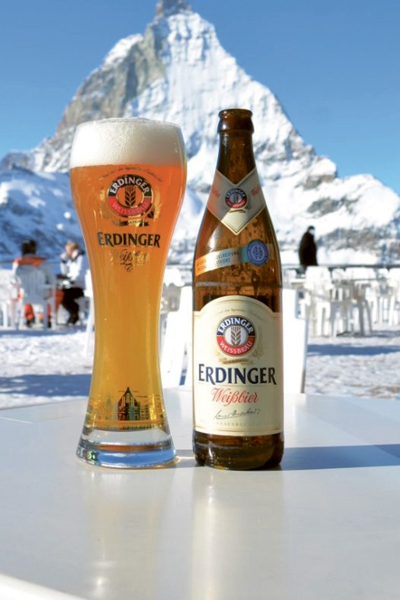 Mit Blick auf die Spitze des Matterhorns und bei strahlendem Sonnenschein schmeckt Jo Dekeyster unser ERDINGER gleich noch viel besser.