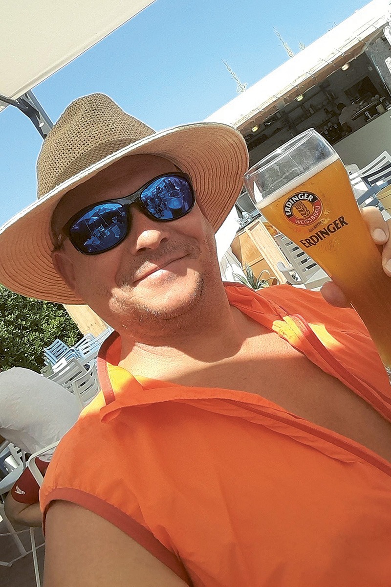 Michael Ambos macht Urlaub auf dem Campingplatz in Italien. Perfekt wird es in der Beach Bar mit unserem ERDINGER Weißbier.