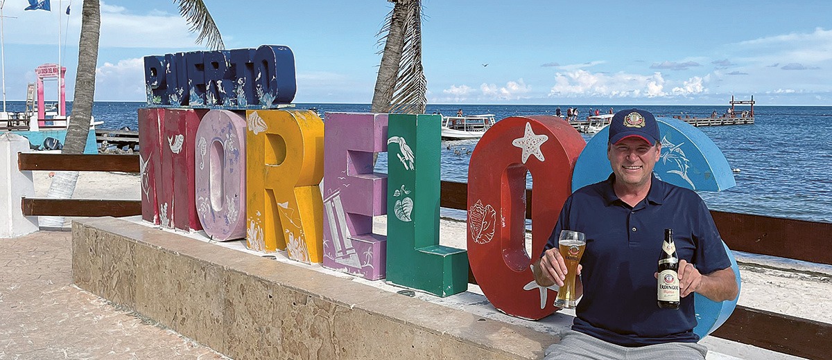 Mit Palmen und dem Karibischen Meer im Hintergrund genießt Stan Stret in Mexiko unser ERDINGER Weißbier.