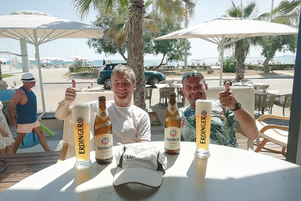Karin und Thomas schmeckt das ERDINGER nicht nur in Bayern, sondern auch am Strand auf Mallorca. Salud!