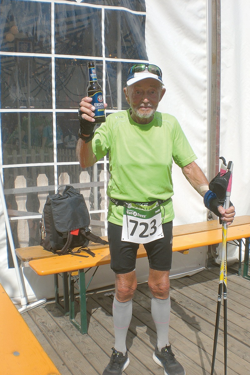 Otmar Nejtek aus Unterhaching meisterte im Sommer den Run4Trees. Nach der 5,4 km langen Nordic-Walking-Strecke stieß er mit einem ERDINGER Alkoholfrei Zitrone auf seine sportliche Leistung an.