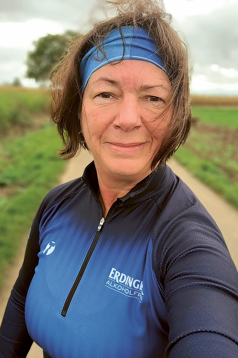 Simone Spälte gewann unser schickes ERDINGER Alkoholfrei-Laufshirt. Bei der nächsten Walking-Runde kam es gleich zum Einsatz.
