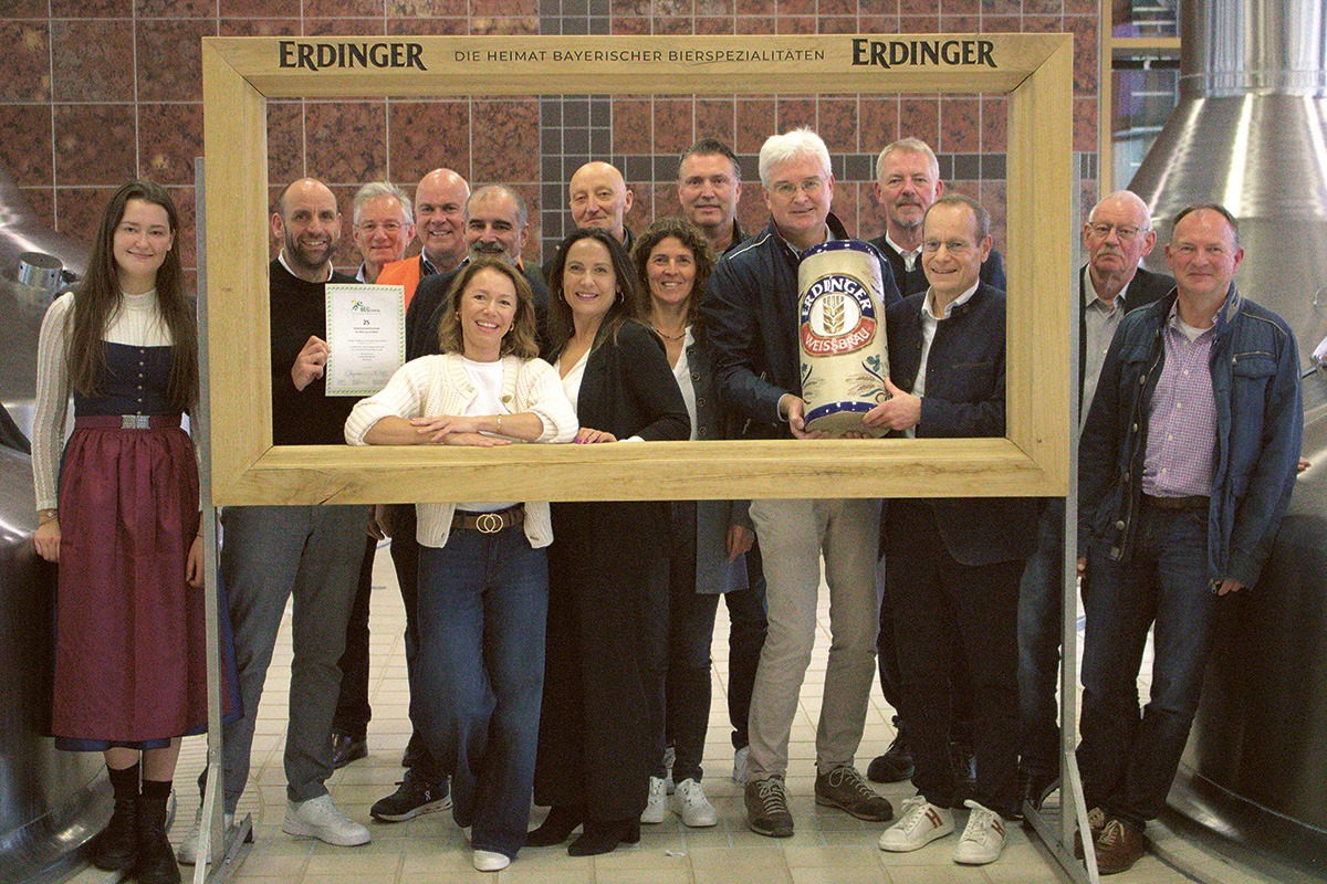 Der Vorstand der BEG Isental (Johann Koxholt, Bernhard Gangkofer, Karsten Borgmann, Benedikt Pointner) sowie Teile des Aufsichtsrates und weitere Mitglieder gemeinsam mit Dr. Stefan Kreisz, Vorsitzender der Geschäftsführung, und Thomas Faber, Technischer Betriebsleiter, im ERDINGER Besucherzentrum.